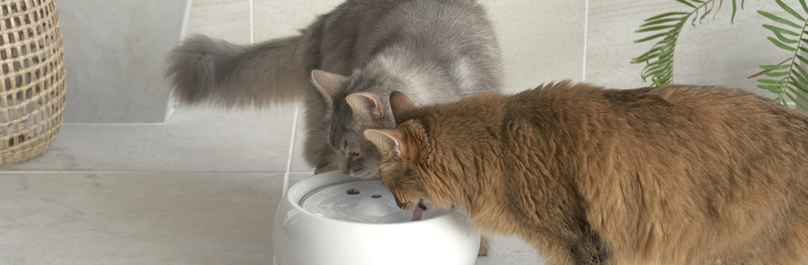 ワンちゃんやネコちゃんの体を60~80%占めている水。「水分補給」と「健康」は、実はとても深い関係にあります。ワンちゃんやネコちゃんも人と同じように、飲水量が減ると体にさまざまな不調が現れてしまいます。健康維持のためには、飲水量を意識し、しっかりと水分補給ができる環境を整えてあげましょう。