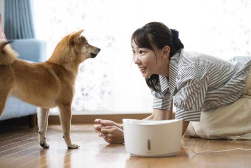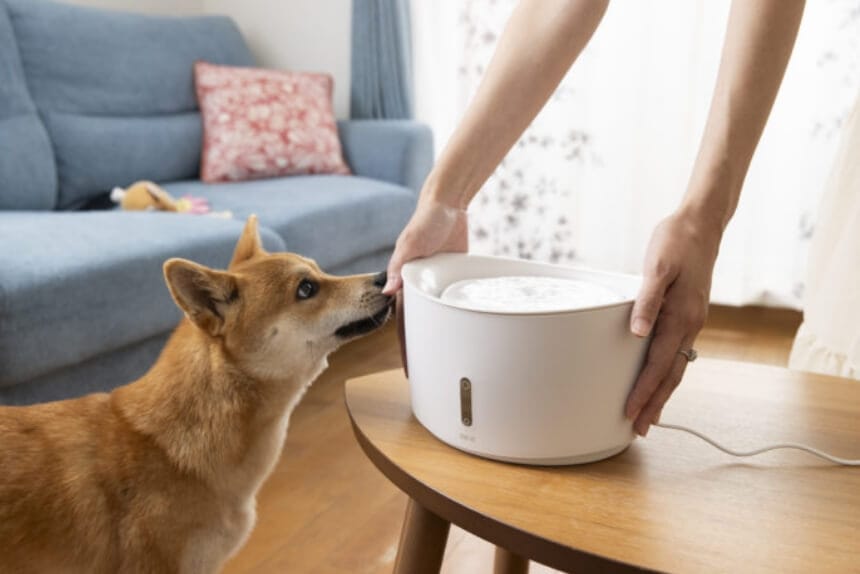 愛犬の日々の健康管理には、適正量の清潔な水を飲ませることが大切です。ピュアクリスタルは、コンセントを挿すだけで手軽に清潔な水を飲ませることができる循環式給水器です。安定感があるので倒れにくく、水容量もたっぷりあり、留守中に水が不足する心配がありません。さらに、ワンちゃんが飲みやすいよう高さや飲み口の広さも工夫されています。愛犬の水分管理でお悩みの方はぜひ試していただきたいです。